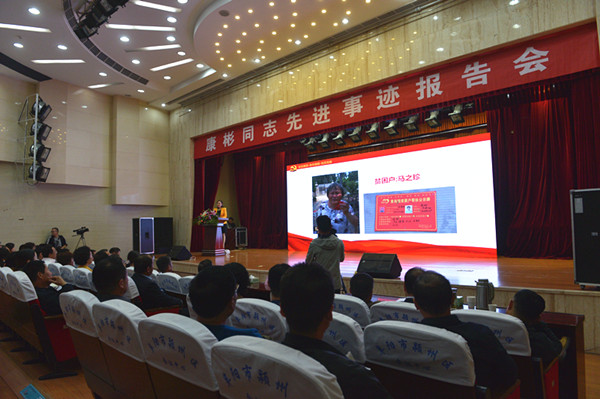 報告會上,阜陽廣播電視臺記者高韙、康彬生前同事王夢思、康彬生前好友陳杰三人分別以“29歲的青春,定格在扶貧路上”、“同事眼中的康彬”“戰(zhàn)友眼中的康彬”為主題,回顧了康彬同志短暫卻又樸實的一生,現(xiàn)場觀看了因故未能到場的康彬妻子孟莎的報告視頻,用感人肺腑的話語展現(xiàn)了“妻子眼中的康彬”,講述了他撲下身子、勇于擔(dān)當(dāng)、敢于作為的感人事跡,現(xiàn)場不時響起熱烈掌聲。