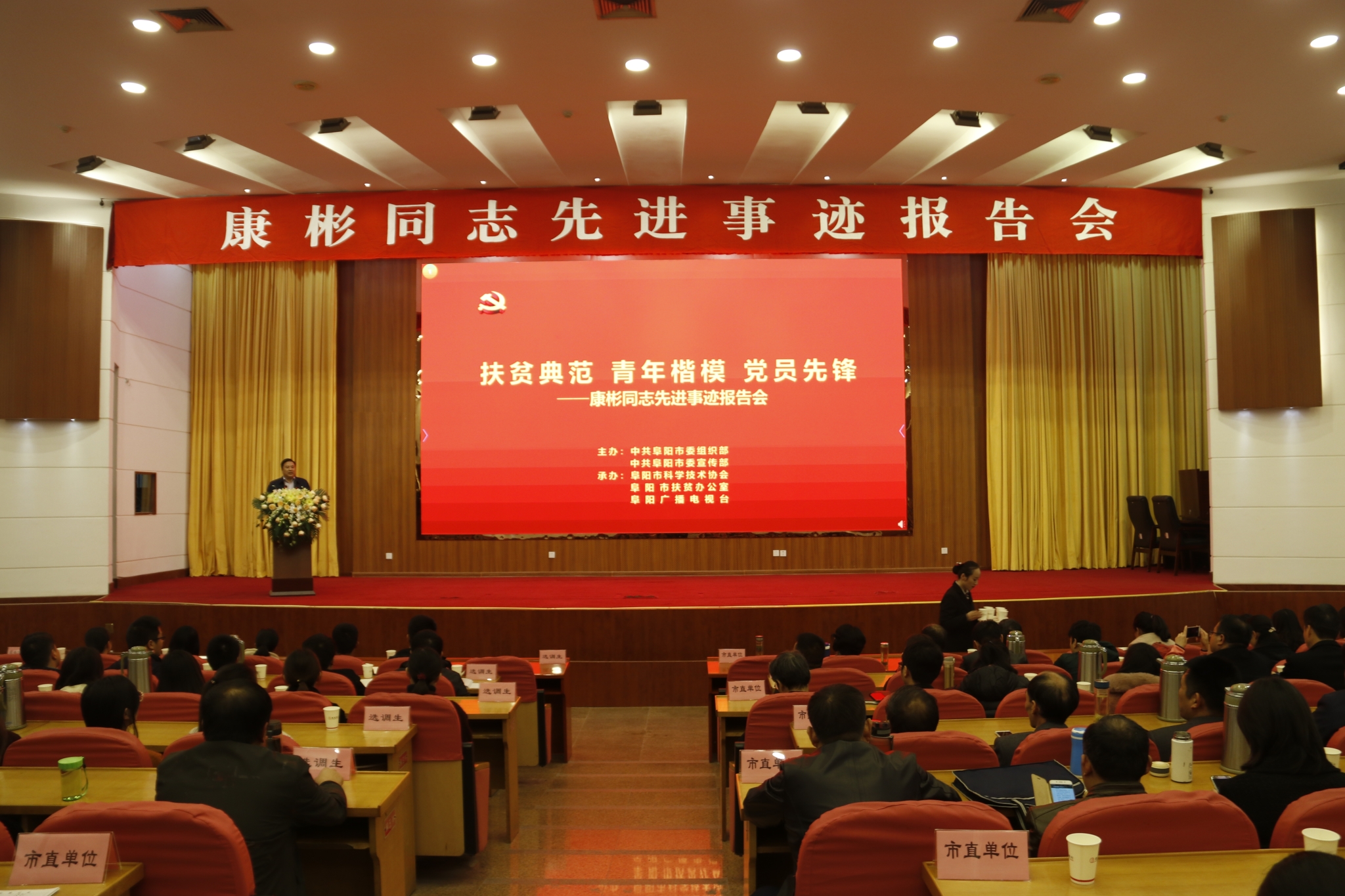 市直工委書記李濤在報告會上致辭,他滿懷深情地回顧了康彬同志短暫而厚重的一生,并介紹康彬同志于2017年6月榮獲阜陽市直“優(yōu)秀共產黨員”榮譽稱號。市直工委于2018年6月19日發(fā)出了《關于在市直單位開展向康彬同志學習的決定》。他贊揚康彬同志是市直黨員的楷模,把對黨的忠誠化作了實際行動,用生命詮釋了對黨和人民群眾的無限熱愛之情;是市直選派干部的楷模,把貧困戶的事當成是自己的事,用脫貧的成效架起黨和人民群眾溝通的橋梁;是市直青年干部的楷模,把滿腔的熱血灑在了脫貧攻堅的大地上,用青春譜寫了中國夢的新篇章。他要求大家要以康彬同志為榜樣,齊力奏響建設大美阜陽的號角。