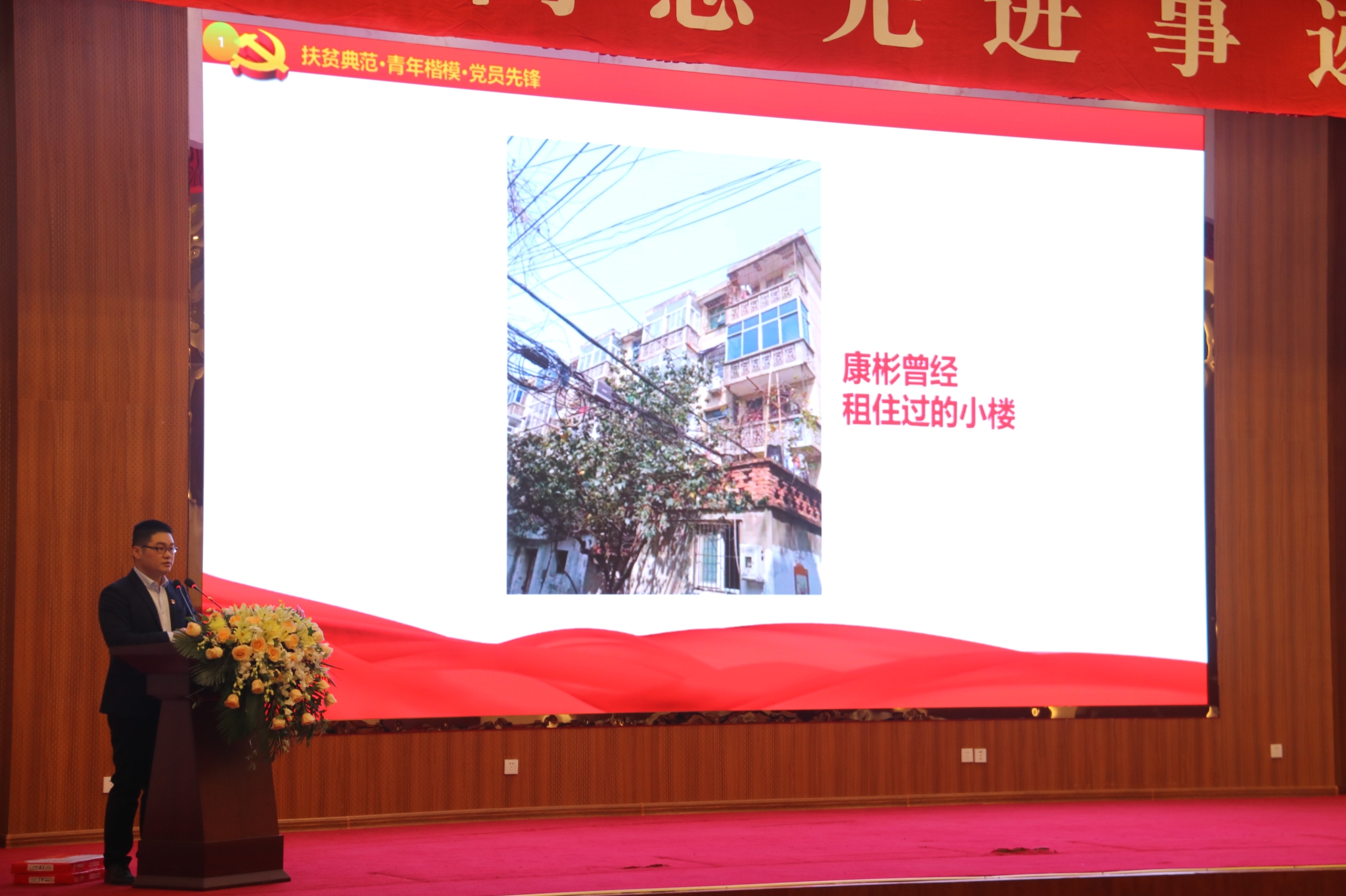 報告會上,報告團成員高韙、王夢思、陳杰分別作了題為《29歲青春,定格在扶貧路上》、《同事眼中的康彬》、《戰(zhàn)友眼中的康彬》的報告?,F場還播放了媒體采訪康彬父母、妻子緬懷康彬的視頻。報告會從不同角度,不同側面回顧了康彬同志在學習、工作、生活上的感人細節(jié)。一位年輕的黨員干部,心系扶貧服務群眾,勇于擔當不計得失。真摯感人的事跡感染著在場的每一個人。