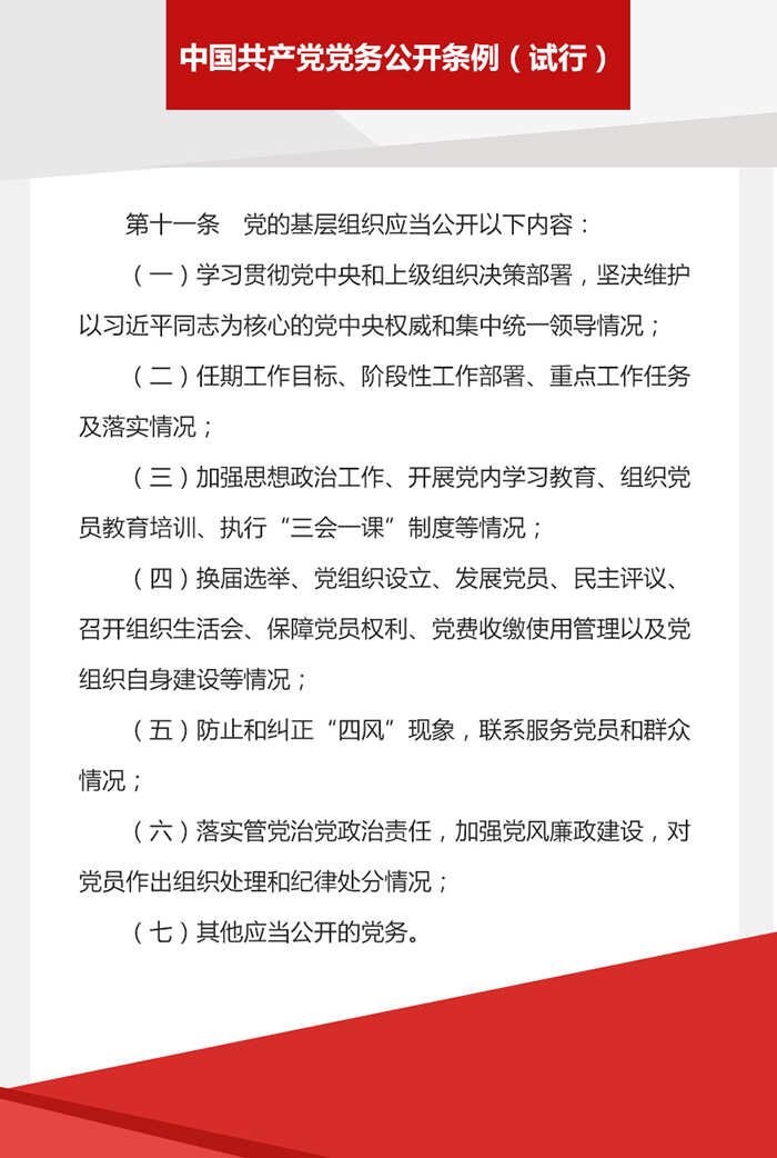 黨支部是黨的基礎(chǔ)組織,是黨的組織體系的基本單元。不久之前,中共中央政治局召開會(huì)議,審議了《中國共產(chǎn)黨支部工作條例(試行)》。會(huì)議認(rèn)為,制定和實(shí)施《條例》,是推動(dòng)全面從嚴(yán)治黨向基層延伸的重要舉措,為新時(shí)代黨支部建設(shè)提供了基本遵循,對(duì)加強(qiáng)黨的組織體系建設(shè),全面提升黨支部組織力、強(qiáng)化黨支部政治功能,鞏固黨長期執(zhí)政的組織基礎(chǔ),意義十分重要。那么,黨支部工作都包含哪些方面?讓我們透過這些重要文件來看一看。