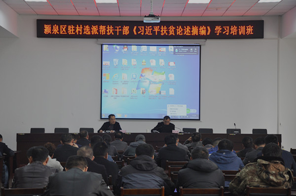 11月29日上午,潁泉區(qū)委組織部、區(qū)委黨校舉辦全區(qū)駐村選派幫扶干部《習近平扶貧論述摘編》學習培訓班,全區(qū)貧困村及非貧困村駐村選派幫扶干部參加了培訓,區(qū)扶貧辦副主任李文金作具體業(yè)務培訓和指導,會議由區(qū)農(nóng)組辦主任王春杰主持。