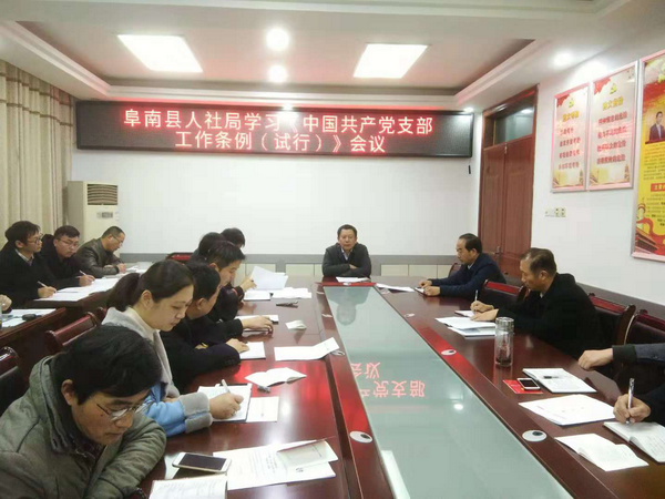 為深入學(xué)習(xí)貫徹《中國共產(chǎn)黨支部工作條例(試行)》精神,11月30日,阜南縣人社局召開了學(xué)習(xí)《條例》專題會議。會議由局黨組書記、局長周赟主持,局領(lǐng)導(dǎo)葉照志、倪洪林,局機(jī)關(guān)各股室、局屬各單位負(fù)責(zé)人參加了會議。