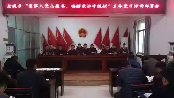 12月3日上午,老觀鄉(xiāng)在三樓會(huì)議室召開(kāi)“重溫入黨志愿書(shū),喚醒黨性守規(guī)矩”主題黨日活動(dòng)部署會(huì),會(huì)議由老觀鄉(xiāng)主持全面工作的黨委副書(shū)記、鄉(xiāng)長(zhǎng)王軍主持,全體鄉(xiāng)村干部、駐村工作隊(duì)參加。