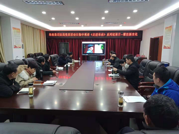 為弘揚(yáng)王家壩精神,進(jìn)一步提升黨員干部為民服務(wù)意識,12月10日上午,阜南縣司法局組織局機(jī)關(guān)黨員集中觀看《走進(jìn)阜南》系列紀(jì)錄片--《那高頭真排場》,活動(dòng)由局黨組書記、局長丁傳珠主持,局黨組班子成員以普通黨員身份參加活動(dòng)。