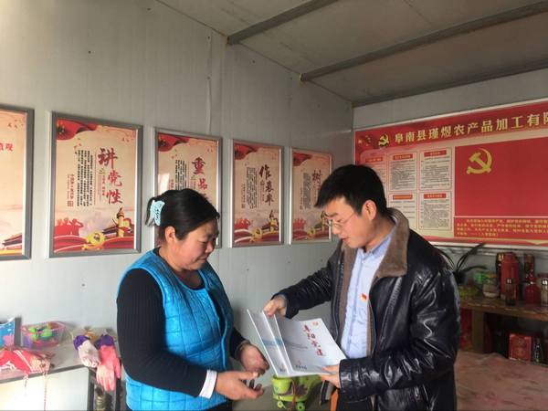 12月12日上午,阜南縣委組織部研究室副主任、老觀鄉(xiāng)非公黨建指導(dǎo)員郝愛亮到老觀鄉(xiāng)瑾煜有限公司黨支部指導(dǎo)黨建工作。