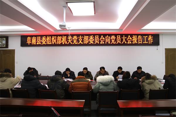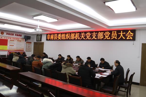 12月27日,阜南縣委組織部機關(guān)黨支部召開2018年度黨員大會,縣委常委、組織部長、統(tǒng)戰(zhàn)部長孫國桃以普通黨員身份參加會議,會議邀請了縣直機關(guān)工委書記朱偉華列會指導,機關(guān)支部全體黨員參加會議。