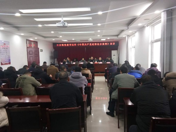 為深入推進(jìn)新《中國(guó)共產(chǎn)黨紀(jì)律處分條例》在全鎮(zhèn)的宣傳和學(xué)習(xí),12月26日,潁州區(qū)三合鎮(zhèn)召開(kāi)中心組學(xué)習(xí)擴(kuò)大會(huì)議。三合鎮(zhèn)機(jī)關(guān)全體干部、村居兩委、計(jì)生專干、扶貧專干和駐村扶貧工作隊(duì)員共100余人參加會(huì)議。