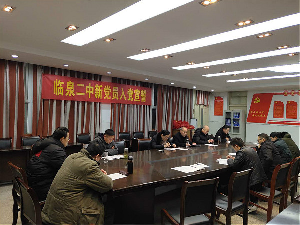 新年伊始,寒氣逼人,但 2019年1月7日下午2點(diǎn)30分臨泉二中黨員活動(dòng)室卻熱情洋溢,這里正舉行著一次隆重的入黨宣誓儀式。參加此次宣誓儀式的有臨泉二中校黨委中心組全體成員全及龐保平、馬云萍二位同志,儀式由校黨委專(zhuān)職副書(shū)記莊煜同志主持。