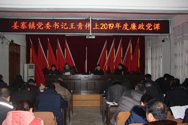 為讓干部解放思想、履職盡責、真抓實干、奮發(fā)有為,做一名讓組織放心群眾滿意的基層干部,2019年1月14日,姜寨鎮(zhèn)黨委書記王青偉在姜寨鎮(zhèn)大會議室上了一堂生動的廉政黨課。黨課由姜寨鎮(zhèn)政府負責人、黨委副書記陳吉鵬主持,鎮(zhèn)機關全體干部和村黨總支書記、村委會主任和鎮(zhèn)直單位黨支部書記共106人參加廉政黨課報告會。