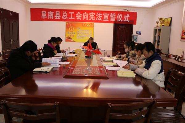 1月14日,阜南縣總工會(huì)召開黨組(擴(kuò)大)會(huì)議,研究脫貧攻堅(jiān)工作,縣總工會(huì)黨組書記、副主席冷治武主持會(huì)議并講話,黨組成員、經(jīng)審會(huì)主任石文法出席會(huì)議。