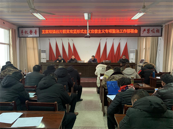 為深入貫徹習(xí)近平總書記關(guān)于堅(jiān)決整治形式主義、官僚主義重要講話精神和批示精神,扎實(shí)開(kāi)展脫貧攻堅(jiān)形式主義官僚主義專項(xiàng)整治工作,1月14日,王家壩鎮(zhèn)召開(kāi)脫貧攻堅(jiān)形式主義、官僚主義專項(xiàng)整治工作部署會(huì),全體鎮(zhèn)村干部、鎮(zhèn)直各單位負(fù)責(zé)人、駐村工作隊(duì)成員參加會(huì)議,會(huì)議由鎮(zhèn)黨委書記張濤主持。