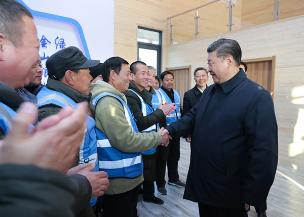 1月16日至18日,中共中央總書(shū)記、國(guó)家主席、中央軍委主席習(xí)近平在京津冀考察,主持召開(kāi)京津冀協(xié)同發(fā)展座談會(huì)并發(fā)表重要講話。這是1月16日下午,習(xí)近平在河北雄安新區(qū)“千年秀林”大清河片林一區(qū)造林區(qū)域秀林驛站,同參與造林護(hù)林的村民親切握手。新華社記者 鞠鵬 攝
