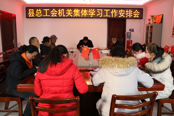 1月21日下午,阜南縣總工會(huì)召開機(jī)關(guān)集體學(xué)習(xí)工作安排會(huì),會(huì)議由縣總工會(huì)黨組書記、副主席冷治武主持,縣政協(xié)副主席、縣總工會(huì)主席劉耀輝,黨組成員、副主席申靈出席會(huì)議。