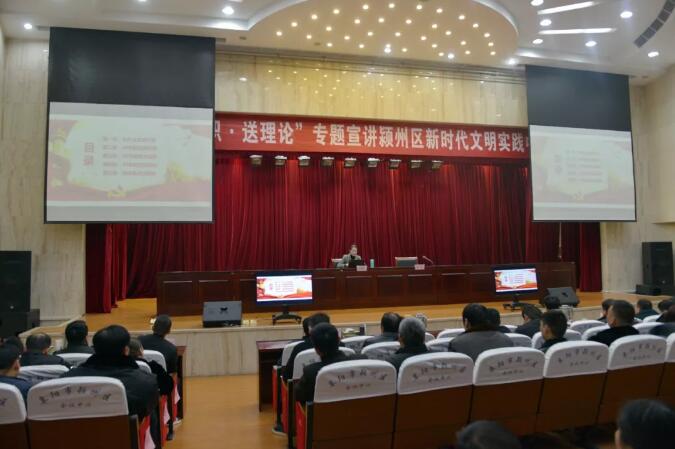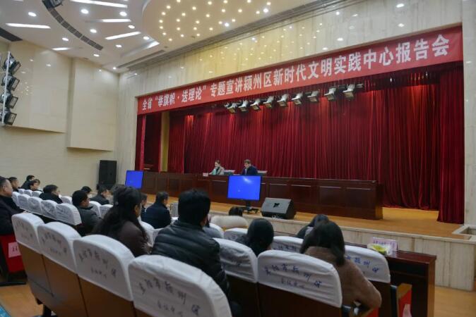 1月29日,全省“舉旗幟?送理論”專題宣講潁州區(qū)新時代文明實踐中心報告會在潁州區(qū)政府一樓會議室舉行。各鄉(xiāng)鎮(zhèn)街道宣傳委員、區(qū)直各單位分管負(fù)責(zé)人、青年宣講團成員、村居書記200余人在現(xiàn)場聽取了宣講。報告會由區(qū)委常委、宣傳部長高超主持。