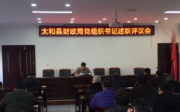 1月28日下午,太和縣財政局在五樓會議室召開2018年度黨組織書記述職評議會議。會議由局黨組成員于海同志主持并講話,局全體黨員參加會議。