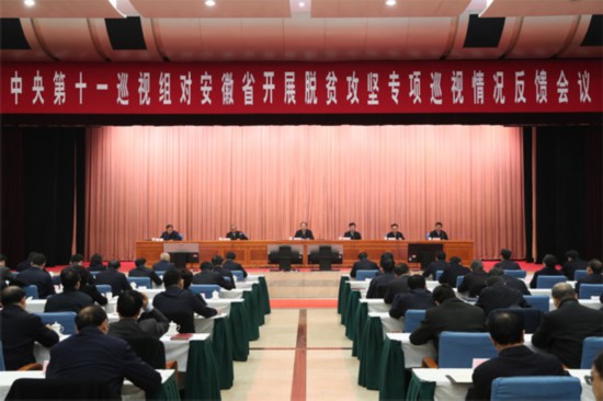 根據(jù)黨中央統(tǒng)一部署,2018年10月18日至11月30日,中央第十一巡視組對安徽省開展了脫貧攻堅(jiān)專項(xiàng)巡視。巡視組堅(jiān)持以習(xí)近平習(xí)近平新時代中國特色社會主義思想為指導(dǎo),深入貫徹黨的十九大精神,牢固樹立“四個意識”,堅(jiān)定“四個自信”,把“兩個維護(hù)”作為根本任務(wù),貫徹中央巡視方針,牢牢把握脫貧攻堅(jiān)專項(xiàng)巡視的再監(jiān)督工作定位,聚焦脫貧攻堅(jiān)政治責(zé)任深入開展監(jiān)督檢查,督促各級黨組織和領(lǐng)導(dǎo)干部強(qiáng)化政治責(zé)任擔(dān)當(dāng),推動解決脫貧攻堅(jiān)過程中存在的突出問題,為如期實(shí)現(xiàn)脫貧攻堅(jiān)目標(biāo)提供堅(jiān)強(qiáng)政治保障。中央巡視工作領(lǐng)導(dǎo)小組聽取了巡視組的巡視情況匯報,并向中央政治局常委會會議報告了有關(guān)情況。