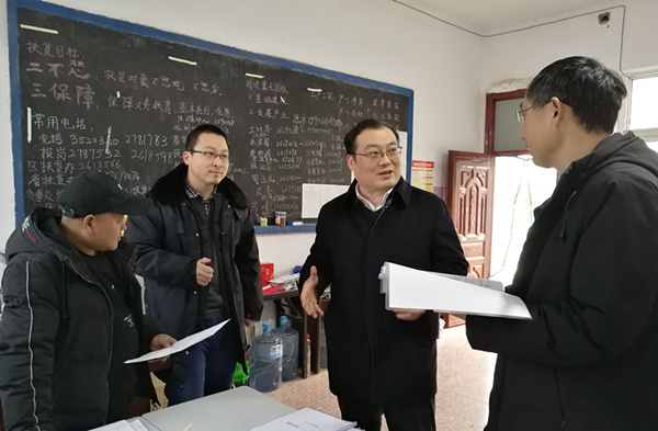 在殷溜社區(qū)黨群服務(wù)中心,劉洪潔隨機(jī)抽查了饒炳忠、姜海平等邊緣戶的檔案資料,與區(qū)扶貧辦、駐村扶貧工作隊(duì)負(fù)責(zé)同志以及包片干部深入探討了邊緣戶認(rèn)定方面的工作方法,并就近期如何開展脫貧攻堅(jiān)、抓好脫貧攻堅(jiān)專項(xiàng)巡視整改工作進(jìn)行了現(xiàn)場(chǎng)指導(dǎo)與安排。