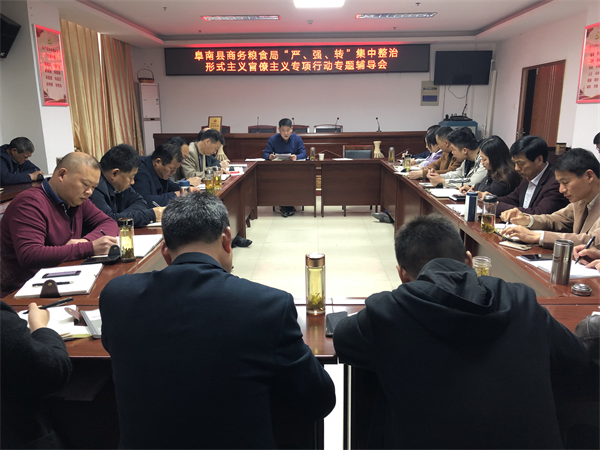 3月18日,阜南縣商務(wù)糧食局召開(kāi)“嚴(yán)、強(qiáng)、轉(zhuǎn)”集中整治形式主義、官僚主義專項(xiàng)行動(dòng)專題輔導(dǎo)會(huì),商務(wù)糧食局全體人員參加專題輔導(dǎo)。