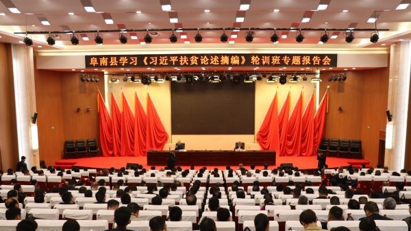 4月16日,阜南縣學習《習近平扶貧論述摘編》輪訓班專題報告會在縣委黨校報告廳主會場舉行,各鄉(xiāng)鎮(zhèn)及縣經(jīng)開區(qū)設分會場收聽收看了報告會實況。報告會邀請中共中央黨校社會和生態(tài)文明部教研室副主任、副教授郭兆暉作學習《習近平扶貧論述摘編》專題報告??h委書記崔黎主持報告會。