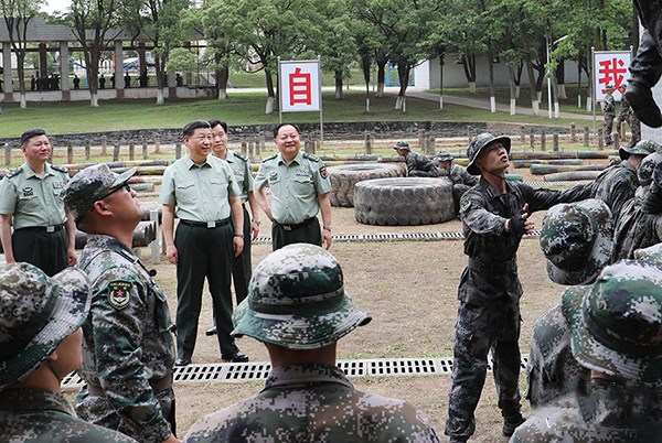 5月21日,中共中央總書記、國家主席、中央軍委主席習近平到陸軍步兵學院視察。這是習近平觀看學員進行極限訓練。新華社記者 李剛 攝