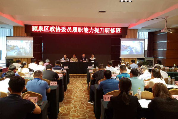 為深入貫徹落實(shí)習(xí)近平總書(shū)記對(duì)人民政協(xié)工作提出的一系列重要思想、重要論述和十九大關(guān)于人民政協(xié)工作的新部署、新要求,進(jìn)一步提高政協(xié)委員和政協(xié)干部的政治把握能力、政協(xié)工作意識(shí)、履職盡責(zé)本領(lǐng),2019年5月14日至18日,潁泉區(qū)政協(xié)聯(lián)合中國(guó)政法大學(xué),在成都市舉辦了“潁泉區(qū)政協(xié)委員履職能力提升”研修班。區(qū)政協(xié)黨組書(shū)記、主席孫朝陽(yáng),副主席孫慧、于冬青和區(qū)政協(xié)常委班子成員,以及部分區(qū)政協(xié)委員、機(jī)關(guān)干部等60余人參加了培訓(xùn)。中國(guó)政法大學(xué)國(guó)際法學(xué)院黨委書(shū)記、副院長(zhǎng)顧永強(qiáng)出席開(kāi)班式。
