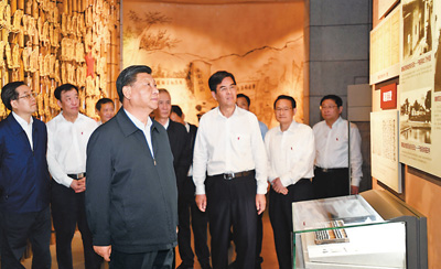 5月20日至22日,中共中央總書記、國家主席、中央軍委主席習(xí)近平在江西考察,主持召開推動(dòng)中部地區(qū)崛起工作座談會(huì)并發(fā)表重要講話。這是習(xí)近平在贛州市于都縣中央紅軍長征出發(fā)紀(jì)念館參觀,聽取有關(guān)中央紅軍長征集結(jié)出發(fā)歷史情況介紹。新華社記者 謝環(huán)馳 攝