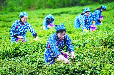 江蘇省盱眙縣把茶產(chǎn)業(yè)作為精準(zhǔn)脫貧的戰(zhàn)略性產(chǎn)業(yè)發(fā)展,帶動(dòng)當(dāng)?shù)刎毨Ь用裨鍪眨︵l(xiāng)村振興,圖為當(dāng)?shù)夭鑸@一景。新華社發(fā)