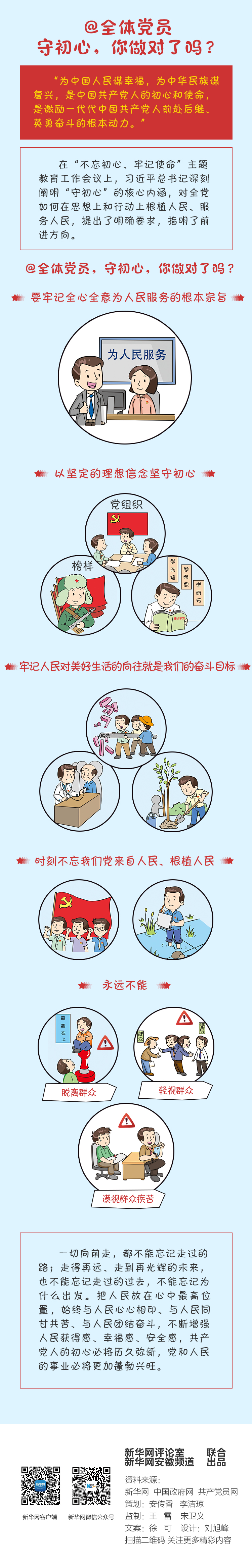 不忘初心,方得始終。開展“不忘初心、牢記使命”主題教育,守初心是要牢牢把握的總要求之一。守初心,與人民風雨同舟、血脈相通、生死與共,這是一個走過近百年風雨的大黨的力量所在,更是我們不懼任何風險挑戰(zhàn)的底氣所在。