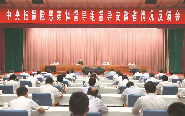 6月14日,中央掃黑除惡第14督導(dǎo)組督導(dǎo)安徽省情況反饋會(huì)在合肥召開(kāi)。本報(bào)記者 徐國(guó)康 攝