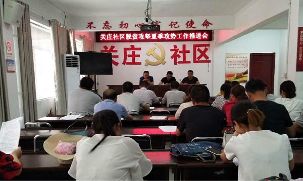 6月19日,潁東區(qū)向陽街道關(guān)莊社區(qū)召開脫貧攻堅“夏季攻勢”工作推進會。會議由關(guān)莊社區(qū)黨總支書記毛文標(biāo)主持,街道黨工委副書記宋宗飛,街道辦事處副主任宋吉祥出席,街道和社區(qū)全體幫扶責(zé)任人及向陽中心校負責(zé)人參加了會議。