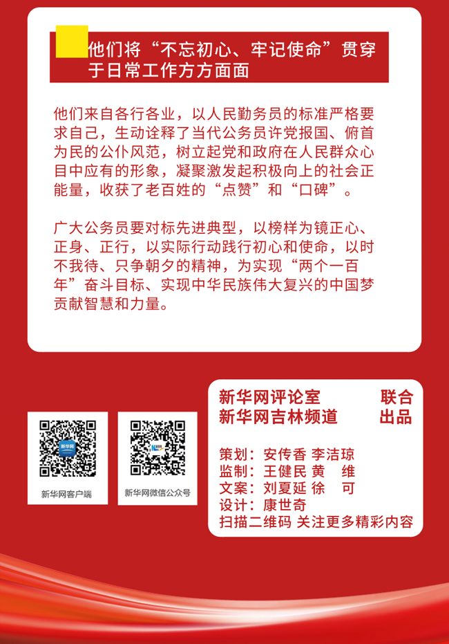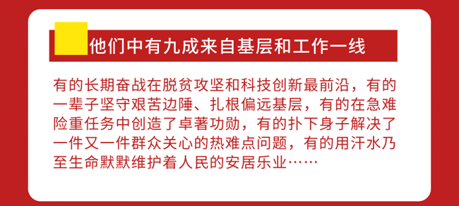 本次擬表彰的個人和集體有九成來自基層和工作一線,他們有的長期奮戰(zhàn)在脫貧攻堅和科技創(chuàng)新第一線,有的一輩子堅守艱苦邊陲、扎根偏遠基層,有的在急難險重任務(wù)中創(chuàng)造了卓著功勛,有的撲下身子解決了一件又一件群眾關(guān)心的熱難點問題,有的用汗水乃至生命默默維護著人民的安居樂業(yè)……他們的模范事跡和崇高精神,生動詮釋了當代公務(wù)員許黨報國、俯首為民的公仆風(fēng)范,樹立起黨和政府在人民群眾心目中的形象,凝聚激發(fā)起積極向上的社會正能量,收獲了老百姓的“點贊”和“口碑”。
