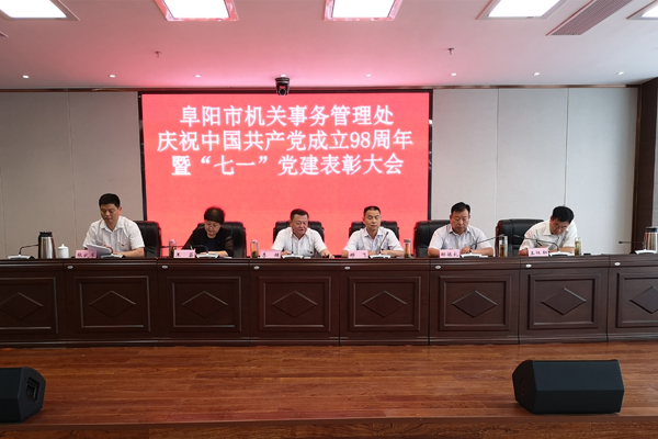 6月30日上午,阜陽市機關事務管理處召開慶祝中國共產黨成立98周年暨迎“七一”表彰大會,市委副秘書長、處黨組書記、處長李超出席會議并作專題黨課,處黨組副書記、副處長邢飛主持會議,全處系統黨員、入黨積極分子參加會議。