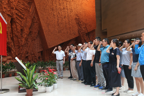 在渡江戰(zhàn)役紀(jì)念館一樓大廳,黨組成員、黨支部書記、副隊長王坤帶領(lǐng)全體黨員舉起右拳,面向鮮紅的中國共產(chǎn)黨黨旗肅穆站立,一起重溫入黨誓詞,用鏗鏘有力、擲地有聲的誓言表達(dá)不忘初心、砥礪擔(dān)當(dāng)?shù)膱远ㄐ拍?。宣誓儀式結(jié)束后,全體黨員安靜有序地參觀了渡江戰(zhàn)役陳列展,不時駐足觀看陳列展品,認(rèn)真聆聽現(xiàn)場講解,重溫中國共產(chǎn)黨光榮革命歷史,緬懷英雄事跡,追憶先烈初心,更加牢記使命擔(dān)當(dāng)。