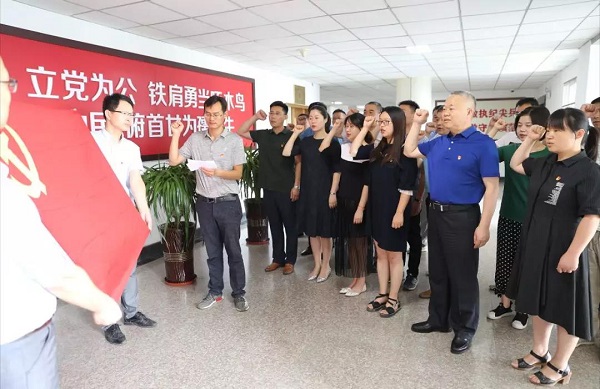 7月10日,阜南縣紀(jì)委監(jiān)委機(jī)關(guān)第一黨支部開展“不忘初心鑄黨魂 牢記使命做先鋒”主題黨日活動。黨員們重溫入黨誓詞,舉行學(xué)習(xí)研討交流、走訪幫扶對象。縣委常委、縣紀(jì)委書記、縣監(jiān)委主任桑鍇以普通黨員身份參加支部活動。