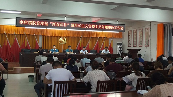 7月11日下午,潁東區(qū)棗莊鎮(zhèn)召開了脫貧攻堅“兩查兩補”暨形式主義、官僚主義問題整改工作會議,會議由鎮(zhèn)黨委副書記、鎮(zhèn)長杜云南主持,鎮(zhèn)全體干部、駐村扶貧工作隊、村、居書記、主任、扶貧專干參加會議。