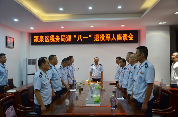 為慶祝建軍92周年,向退役軍人表達(dá)節(jié)日問候,7月16日,潁泉區(qū)稅務(wù)局在三樓會議室召開迎“八一”退役軍人座談會。區(qū)局黨委書記、局長孫利偉,區(qū)局黨委委員、副局長張振平,區(qū)局黨委委員、副局長袁紅壘,區(qū)局20名退役軍人代表參加了座談。