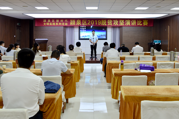 為隆重慶祝中華人民共和國(guó)成立70周年,充分展現(xiàn)全區(qū)干部群眾在脫貧攻堅(jiān)工作中的良好風(fēng)貌和感人事跡,8月15日下午,潁泉區(qū)新時(shí)代文明實(shí)踐系列活動(dòng)2019脫貧攻堅(jiān)演講比賽在區(qū)委五樓隆重舉行。區(qū)委常委、宣傳部長(zhǎng)蘭玉出席活動(dòng)。