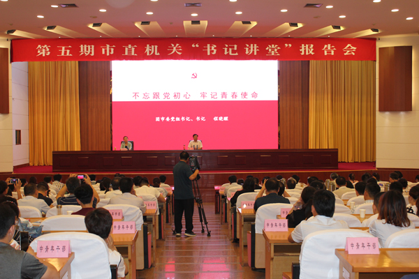 8月22日上午,市直工委在市政府一樓會議室舉辦了第五期市直機關“書記講堂”報告會。團市委黨組書記、書記程曉醒做了題為《不忘跟黨初心 牢記青春使命》的報告。市直機關工委書記李濤主持報告會。市直各直屬黨組織負責人、中青年干部、市直機關理論宣講員、團市委黨員干部、市直工委全體人員300余人參加了報告會。