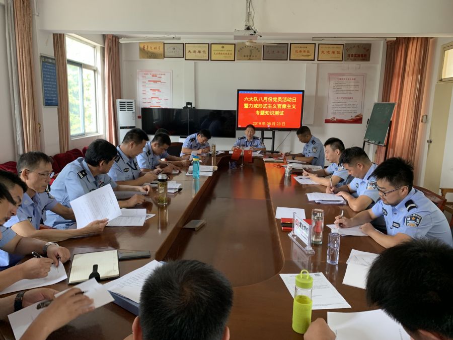 為深入學(xué)習(xí)貫徹習(xí)近平總書(shū)記關(guān)于力戒形式主義、官僚主義的重要論述和指示批示,扎實(shí)推進(jìn)形式主義官僚主義問(wèn)題整改落實(shí),2019年8月23日上午,交警支隊(duì)直屬六大隊(duì)黨支部組織開(kāi)展八月份黨員活動(dòng)日暨力戒形式主義官僚主義專(zhuān)題知識(shí)測(cè)試。