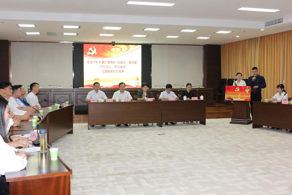 為深入學(xué)習(xí)宣傳貫徹習(xí)近平習(xí)近平新時(shí)代中國特色社會(huì)主義思想和黨的十九大精神,慶祝中華人民共和國成立70周年,按照“不忘初心、牢記使命”主題教育安排,市機(jī)關(guān)事務(wù)管理處于9月21日舉辦了迎國慶、強(qiáng)黨建”“不忘初心、牢記使命”主題教育知識(shí)競(jìng)賽。處黨組領(lǐng)導(dǎo)班子成員、市直工委副書記周君、市委“不忘初心、牢記使命”主題教育第十巡回指導(dǎo)組副組長(zhǎng)馬志新出席活動(dòng)。