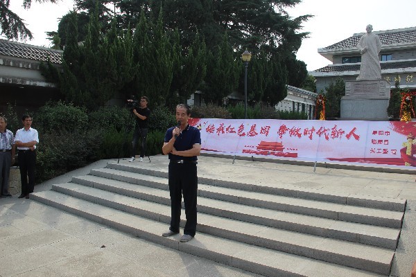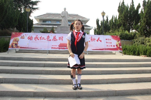 接下來在魏野疇紀(jì)念館廣場進(jìn)行“烈士后代講烈士”報(bào)告會(huì)。阜臨小學(xué)六年級(jí)的王一諾是張?zhí)N華烈士的曾外孫女,她以“踏著先輩的足跡前進(jìn)”為題講述了張?zhí)N華的革命事跡,張?zhí)N華烈士生于1899年,1922年加入中國共產(chǎn)黨,他帶領(lǐng)老百姓們打土壕,分土地,為了啟發(fā)學(xué)生的革命思想,建立育才閣并豎對(duì)聯(lián):“豎起兩根硬骨頭,誓與土劣拼死命?!?931年因觸犯土豪劣紳利益遭陷害入獄,英勇犧牲。三年級(jí)的康琪琛講述了大爺爺康德林在中蘇1969年珍寶島戰(zhàn)役中英勇戰(zhàn)斗、壯烈犧牲的事跡。五年級(jí)的程慶杰講述了警察爸爸程文杰2009年在執(zhí)行緝毒任務(wù)過程中英勇犧牲的事跡,程文杰2011年被安徽省人民政府追認(rèn)為“革命烈士”。少先隊(duì)員宣讀了《緬懷革命先烈 勇挑歷史重?fù)?dān)》倡議書,進(jìn)行了重溫入隊(duì)誓詞活動(dòng)。