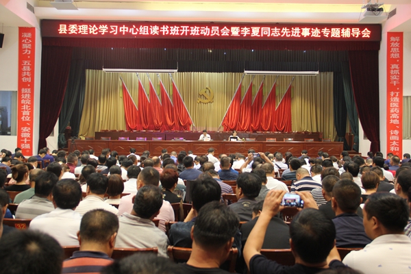 9月26日上午,太和縣召開縣委理論學習中心組讀書班開班動員暨李夏同志先進事跡專題輔導會。省紀委監(jiān)委宣傳部正處級紀檢監(jiān)察員、李夏同志先進事跡主要采訪報道者李雪原應邀作李夏同志先進事跡專題輔導,縣四大班子領(lǐng)導成員;縣委“不忘初心、牢記使命”主題教育領(lǐng)導小組全體成員;縣委主題教育巡回指導組全體成員;縣直各參學單位主要負責同志、各鄉(xiāng)鎮(zhèn)黨委書記;各村、社區(qū)黨總支書記500余人齊聚縣委大禮堂共同接受靈魂的洗禮??h委書記楊波作縣委理論學習中心組讀書班開班動員講話。