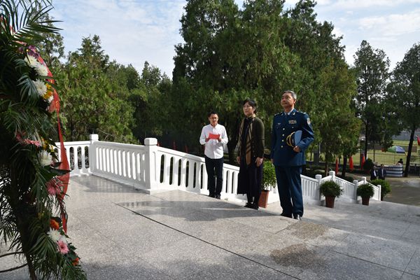 在“四九”起義紀念碑前,喬亞軍脫帽肅立,鞠躬致敬,懷著對先烈們崇高的敬意和深切的悼念,瞻仰紀念碑,敬獻花籃。