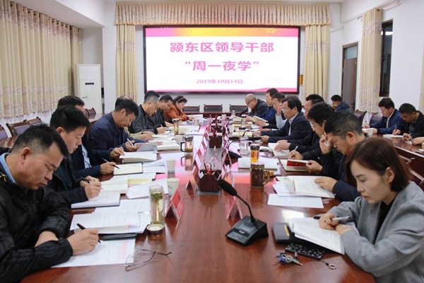 10月14日晚,潁東區(qū)領(lǐng)導(dǎo)干部開啟首次“周一夜學(xué)”,區(qū)四大班子負(fù)責(zé)人,區(qū)法院院長、區(qū)檢察院檢察長,區(qū)直部門主要負(fù)責(zé)人分6組開展學(xué)習(xí)研討,市政協(xié)副主席、區(qū)委書記顧恒中,區(qū)委副書記、區(qū)長張銀軍等區(qū)領(lǐng)導(dǎo)分別主持6個(gè)小組的學(xué)習(xí)討論。