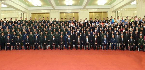 10月16日,黨和國家領(lǐng)導(dǎo)人習(xí)近平、李克強、栗戰(zhàn)書、汪洋、王滬寧、趙樂際、韓正、王岐山等在北京人民大會堂會見中華人民共和國成立70周年慶?;顒踊I辦工作有關(guān)方面代表。新華社記者 黃敬文 攝