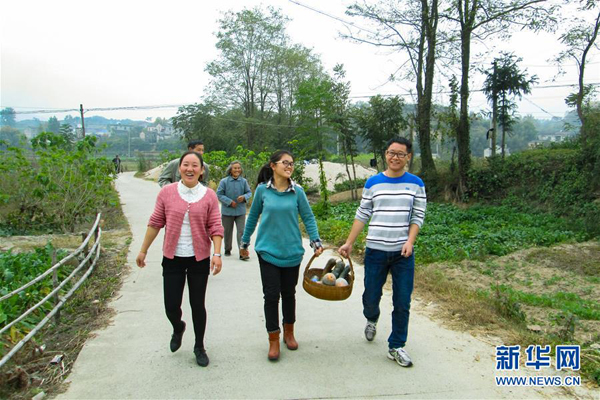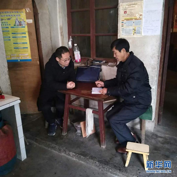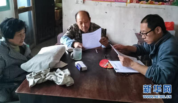 李夏(右)在安徽省績溪縣長安鎮(zhèn)高楊村走訪貧困戶(資料照片)。新華社 發(fā)