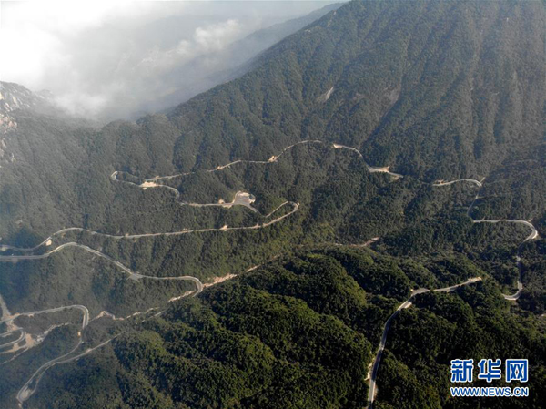 這是通往安徽省績溪縣荊州鄉(xiāng)的盤山公路(10月11日無人機拍攝)。新華社 發(fā)(黃博涵 攝)