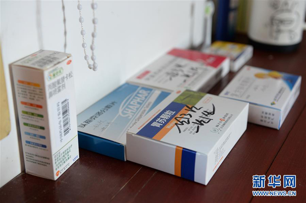 這是10月11日拍攝的李夏書桌上的藥物。新華社 發(fā)(黃博涵 攝)