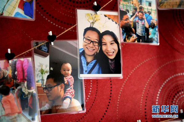 這是10月9日拍攝的李夏家中照片墻上的照片。新華社 發(fā)(黃博涵 攝)