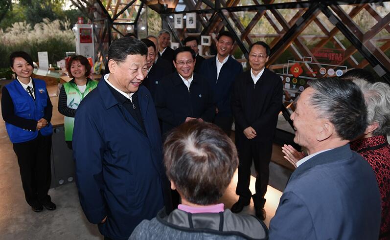 11月2日至3日,中共中央總書記、國家主席、中央軍委主席習近平在上??疾臁_@是2日下午,習近平在楊浦區(qū)濱江公共空間楊樹浦水廠濱江段人人屋黨群服務站,同服務站工作人員和居民交談,了解基層黨建和公共服務情況。新華社記者 謝環(huán)馳 攝